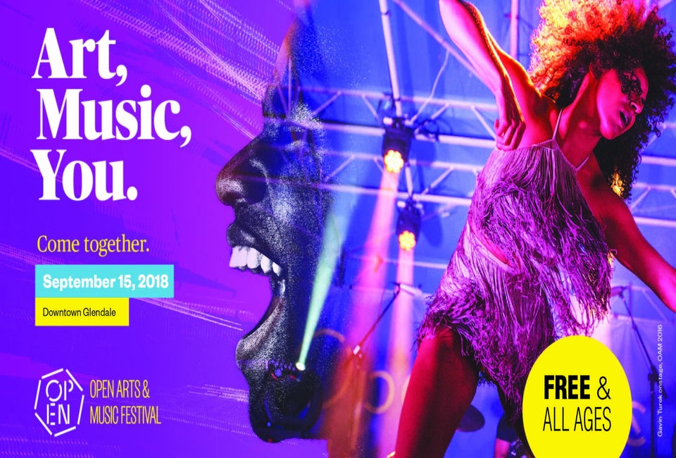 The city block in front of the Alex Theatre is closed for the Open Arts & Music Festival.