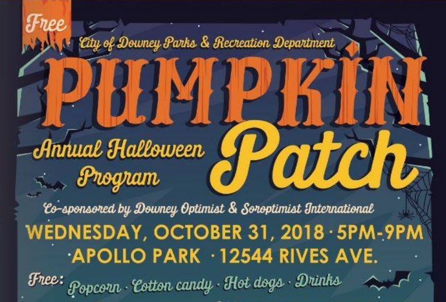 Downey's annual Pumpkin Patch Halloween program is held this year at Downey Adult School. Guests can enjoy free spooky fun including carnival games, a photo booth, a caricature artist, face painting and a pet costume parade. Kids ages 2 - 14 can participate in a costume contest.