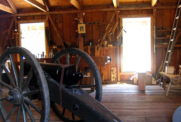 See cancons and woodworking materials in the Quartermaster building at Fort Tejon. Photo courtesy of Wikipedia