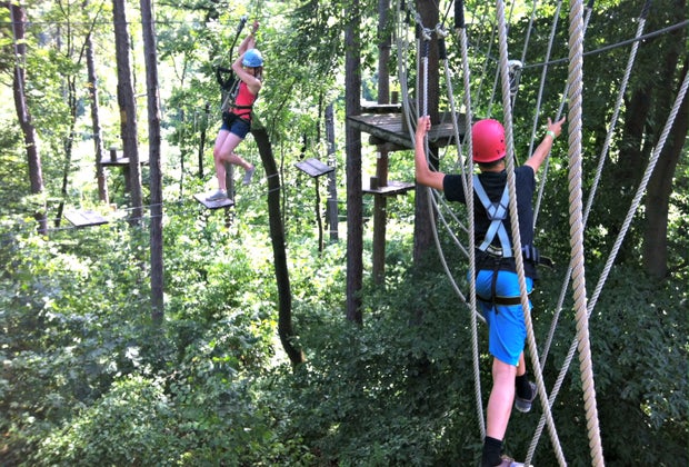 Kids get a workout climbing through the treetops in the Vienna Woods. Photo by author