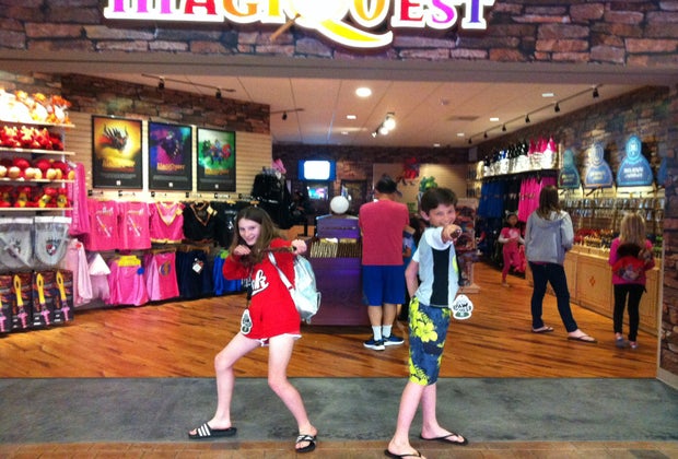 The most unusual dry land entertainment, though, comes in the form of electronic scavenger hunt games. Magic Quest is the Lodge's proprietary interactive game and is played with special wands that connect with game stations throughout the hotel. The game offers three different adventures, each purchased separately and programmed into customizable wands that kids take home and reuse on future visits (wands run about $20, though the array of wand bling on offer can push the price higher). Each game requires from four to eight hours to complete, and kids can fill their down time collecting points, even just walking down a corridor. The game particularly targets older kids, who hop on and off the elevators in search of things that light up and make farting noises right up until 11pm (when the game turns off for the night, to give everyone a rest). A family with two or more older kids may want to team them up on one wand, or get them two different games, since lining up behind each other to listen to the exact same messages gets old fast. My son took a little time to warm to Magic Quest, but once he got the hang of it (with help from costumed guides strolling around to answer game questions) he was hooked.