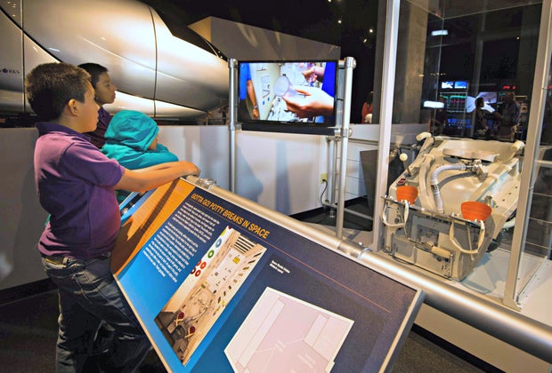 One highlight for kids (especially preschoolers) is the display on going to the potty in space. Kids get to check out an actual space potty (the one astronauts practiced on before Endeavour missions) at an interactive display that explains just what's so difficult about peeing without gravity. Wrinkle your nose if you like, but kids find this hysterical.