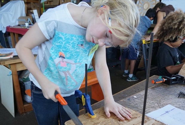 Tinkering Camp at the ReDiscover Center gives real tools and real materials to kids ages 5-12 this winter break. Register for day camp Dec 19-30 at Tinkering School's Westside workshop/warehouse. Use code POPPINS75.
