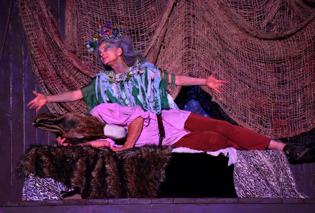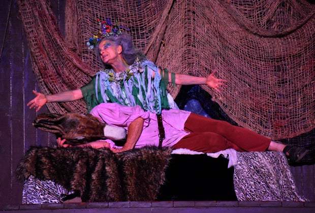 This production of A Midsummer Night’s Dream is right in the middle of these productions. The text has been trimmed to just an hour and a half in ingenious fashion, as none of the lovers’ mishaps, players' follies, or fairies' meddling are lost. Kids get an overview of all the major themes (and lines—it’s fun to watch bigger kids perk up when they recognize a line), but the show ends before they can get antsy or bored. There is no intermission, and the play zips along, with whole portions of the show turned into songs set to original music.