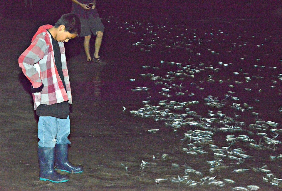Anywhere from a dozen to a thousand fish may wriggle up the beach when the tide turns.