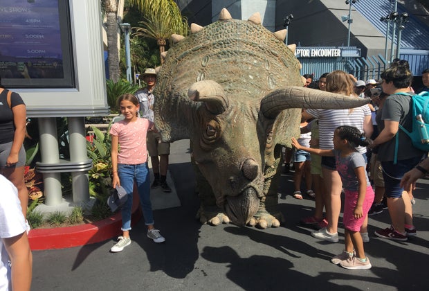 Jurassic World also features some new dinosaur visits outside the ride. Regular visitors know that there have always been dino encounters throughout the day near the entrance of the Jurassic ride, but there are some new and more impressively realistic critters among the crew now. Most notably, an amazingly realistic triceratops now delights mobs of kids, with a handler giving clear instructions about which parts of him are OK to pet. A bit like a mall Santa, who cares if this guy isn't real—he's thrilling to see either way.