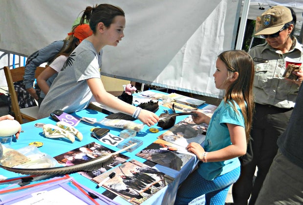Nature journaling Stations take kids' involvement one step further, as they are asked to observe different creatures then write or draw what they have seen. In other words, they're asked to be scientists! The station is set up at different locations throughout the park. (Check the schedule when you arrive, or look for signs posted in the park.)
