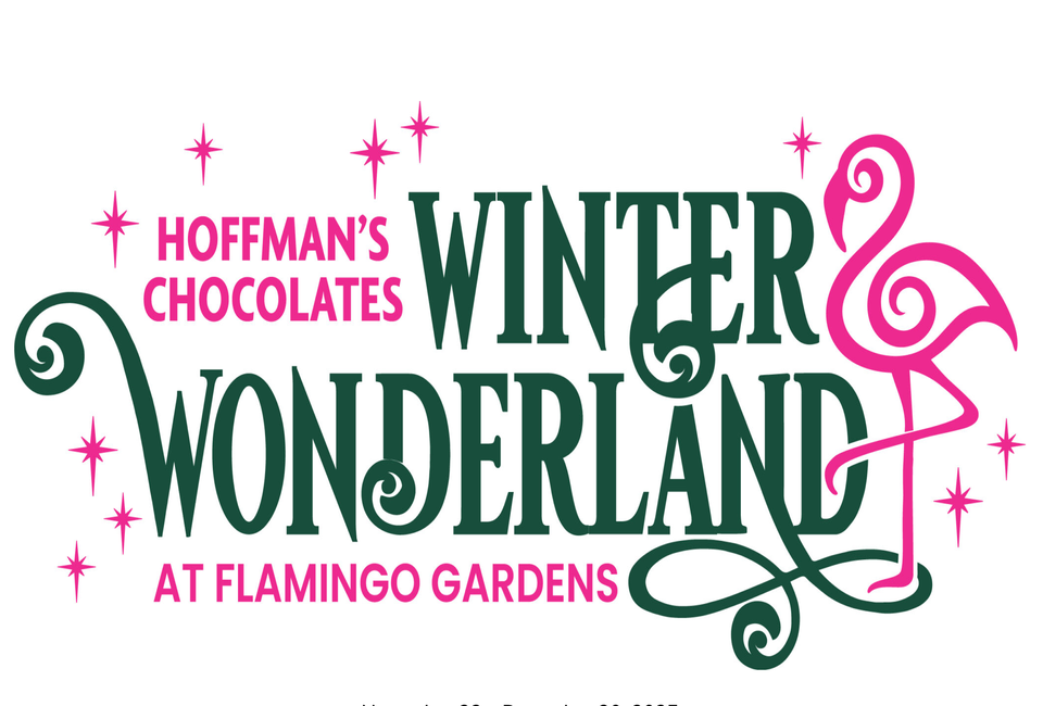 *Hoffman’s Chocolates Winter Wonderland at Flamingo Gardens Presented by Amazon is a separate admission, not included in regular daytime admission. Visitors may no longer return for free with daytime admission purchase. Animal exhibits, tram tour, Wray Home Museum, Gallery exhibits, and Wildlife Encounters are ALL CLOSED during this event*