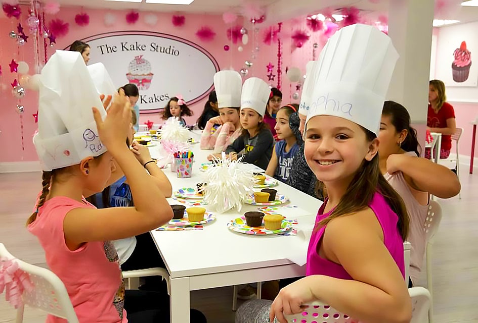 Does your little one subscribe to the idea that cupcakes are muffins that believed in miracles? Well, she’ll sure love a party at The Kake Studio. With cotton candy–colored walls, white mod couches, and delicious painted pictures of cupcakes in all their glory, this Barbie-style dreamscape is straight out of Candy Land. Kara, the owner and resident cupcake Queen has been decorating the birthday party dreams of budding bakers for almost a year now, and will be releasing two party packages with sweet new stars this month, one to include a dessert pizza and the other to include cookie bars (one of the top sellers in her store, Kara’s Kakes.