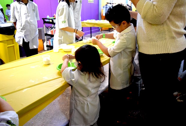 Before your child rolls up her sleeves and dives into the gooey stuff, be sure you do your homework. Tickets are sold for specific time slots and often sell out during weekends and when schools are closed. You'll definitely want to purchase tickets online to avoid getting shut out of your preferred time, and be sure to arrive about 10 minutes before your ticket time. Latecomers may be moved to another time slot if the session has already started.