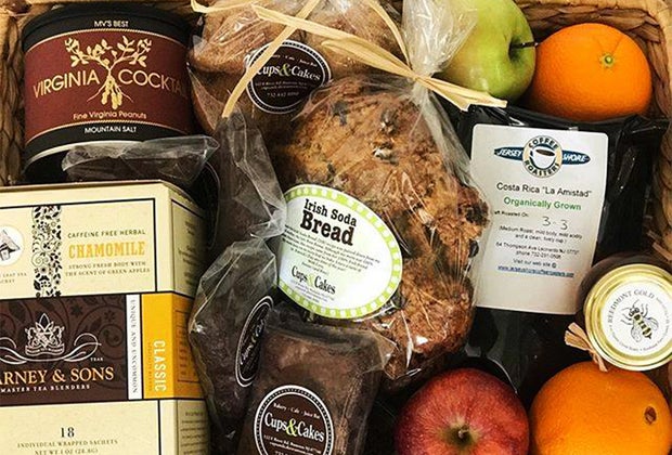 Customizable baskets of goodies are available at Cups and Cakes. Photo courtesy of the shop