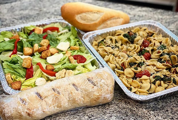 Pick up a hearty Italian meal or make your own with a pizza kit from Florence. Follow their website for daily specials, including family "survival" meals. Pickup and delivery are available from this local establishment which has also provided meals for frontline workers.