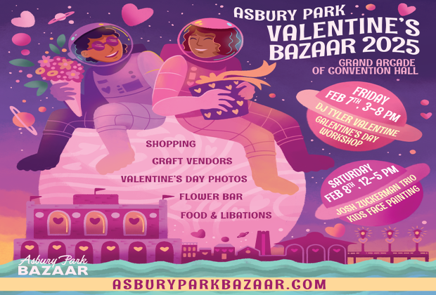 Swing by Asbury Park Convention Hall for a day filled with love, fun, and shopping. Discover unique gifts for a special someone or treat yourself to something special. With a variety of vendors offering handmade crafts, artisanal goods, and delicious treats, plus live music, kids activities and workshops, there's something for everyone to enjoy.