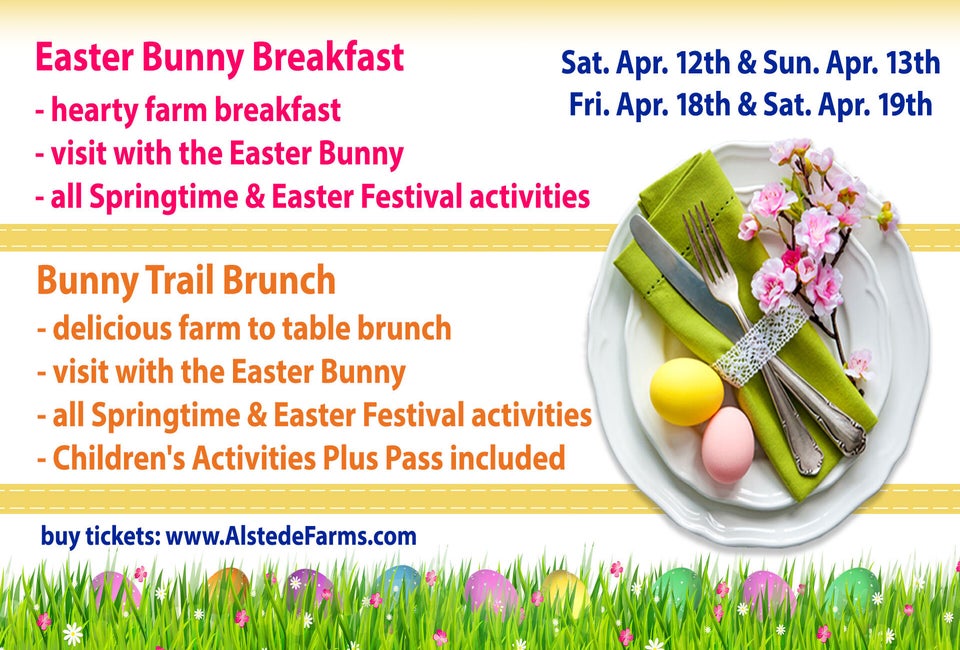 Seatings are at 9am and 10:30am. An elevated Bunny Trail Brunch is offered at 12:30pm