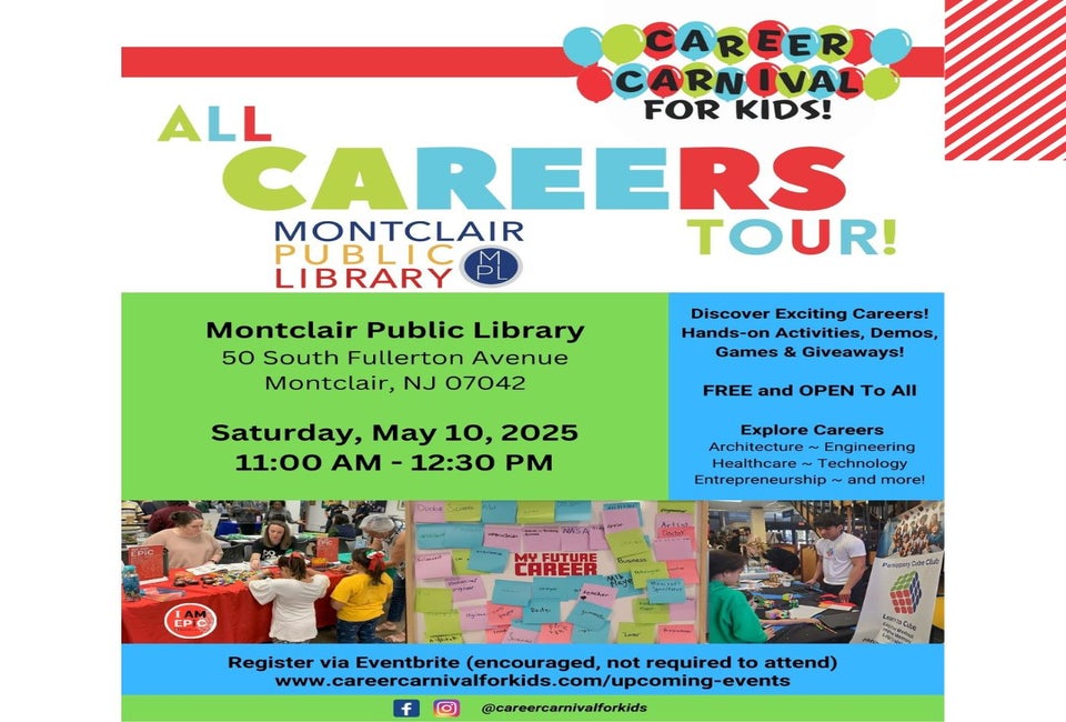Families in Montclair and neighboring communities are invited to the Career Carnival for Kids: All Careers Tour, a hands-on program designed to introduce young people to a variety of exciting professions in a fun and engaging way.