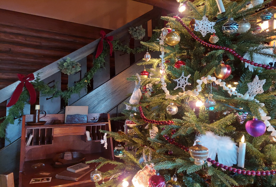 Decorated based on Gustav Stickley’s own ideas about the holidays as told through articles published in his magazine, The Craftsman, the Log House is decked out for the holiday season in period Arts & Crafts style. In The Craftsman, Stickley advocated for the use of natural decorations, promoted products and projects as appropriate and thoughtful gifts–from pottery to furniture to hand-made toys–and made recommendations for keeping the spirit of Christmas, both commercially and philosophically.