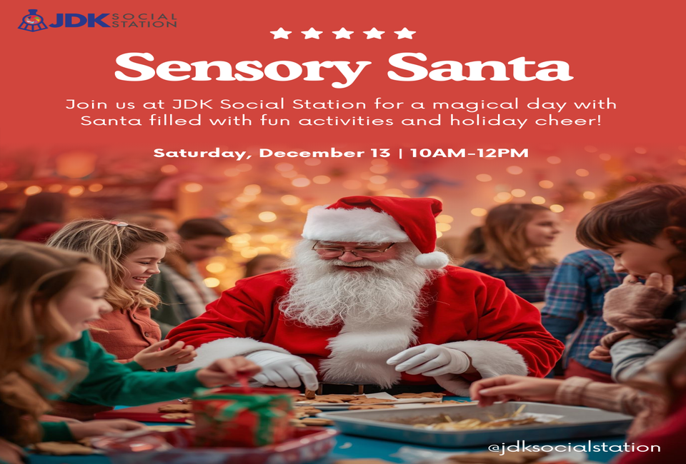 JDK Social Station presents Sensory Santa, a calm, joyful, and sensory-friendly holiday experience. The private photo sessions with Santa feature a sensory-friendly environment, holiday craft station, light snacks and social time with friends and family