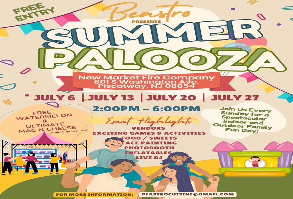Get ready for the ultimate summer fun at Beastro's Summer Palooza. Every Sunday in July, enjoy an amazing lineup of vendors, thrilling inflatables, games, face painting, scrumptious food, delectable sweets, a lively fun photobooth, and incredible live DJ tunes.