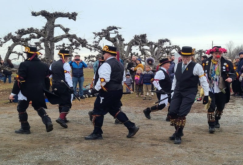 Activities include dancing and singing by the Molly Dancers and re-enactments of old English traditional rituals, as well as chanting and music making, toasts of hot cider and placing gifts of cider-soaked bread in the tree branches while chanting the lively words of praise for the New Year.