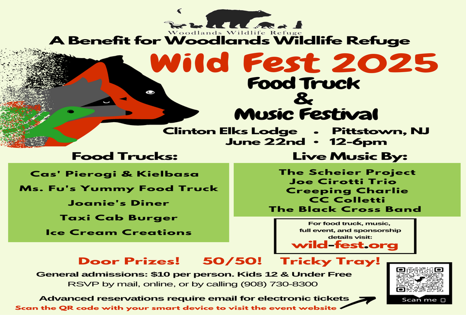 Wild Fest, a benefit for Woodlands Wildlife Refuge, is a popular food truck and music festival with great food, amazing music, and a kids' den with activities like face painting, fairy hair, and meet-and-greets with roaming animal mascots.
