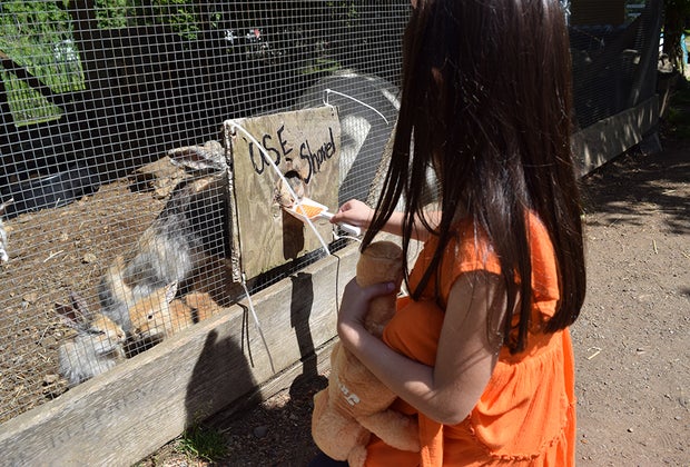 Have fun feeding the bunnies at Brookhollow's Barnyard.