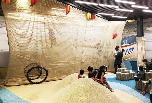 Parents can pal around with their children inside, watch from the sidelines (there are plenty of foam benches to sit on), or supervise from the outside. And stroller parking can be found on the perimeter of the indoor play space.