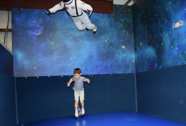 Jump to the moon in the bouncy area. It's an air-filled vinyl dome surrounded by padded walls—no trampoline springs that can cause scrapes and injuries! Photo by author