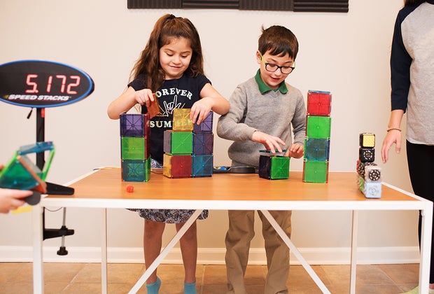In addition to open play, classes, and camps, Genius Gems will host a variety of special events, including Sensory-Friendly Sundays, for kids with sensory sensitivities; Dad Build-A-Thons, to give dads a chance to shine (and to give moms a break); and a Holiday Train Show, featuring electric trains and thousands of magnetic tiles.
