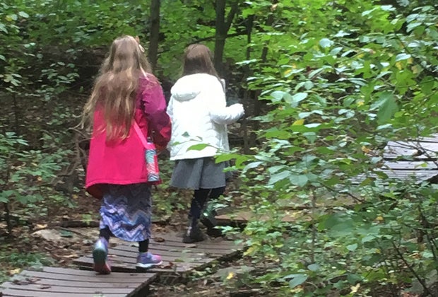 The Red and White trails were easy but probably best for kids 5 years and older due to the bumpy and uneven surfaces. Environmental educators at TNC suggest the Yellow Trail for younger visitors. The quarter-mile path is relatively flat and passes by a clearing where little ones can play. It also leads to a floating dock over the pond. Even so, it's probably best to leave your stroller in the car. An ideal time to check out the place with a preschooler is at the monthly Nature Story Time, which features books and a live animal encounter.