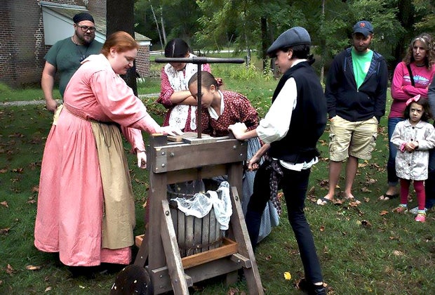 Get fresh apple cider straight from the press. Photo courtesy of the Historic Village at Allaire.
