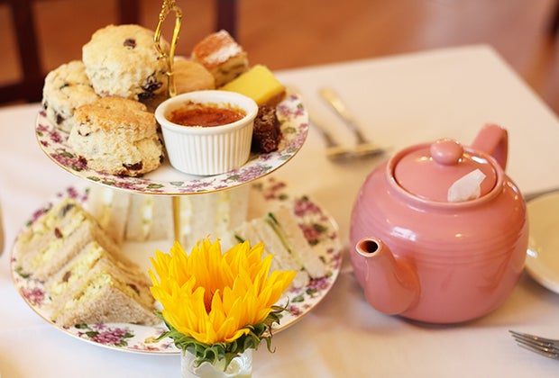 High tea typically includes several courses (such as soup, salad, scones, quiche, tea sandwiches, and dessert) served alongside your own pot of tea. Each course is usually pretty small, but the entire meal can be quite filling. It's generally a good idea to call ahead for reservations, as most tea houses are fairly small, and some have strict seating times and/or limited hours and days of operation. Another tip for newbies: don't pass up the clotted (or Devonshire) cream. This butter-like accompaniment to scones is heavenly when paired with homemade jam.