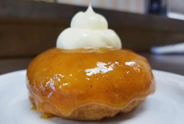 Enjoy a taste of fall with Beignets' Pumpkin Cheesecake doughnut.