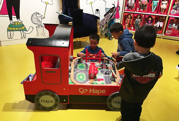 In the Indigo Kids section, youngest readers can peruse books, check out toys and games (including American Girl doll items, LEGOs, and Hot Wheels), squeeze stuffed animals, and flip a whole section of reversible sequins items. There is a small train table on the back of a fire truck, an oversized velvet throne to read in, and tables with cool-shaped crayons and paper for doodling. There's even a foosball table set up at the edge of the café.