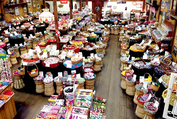 Inside this rustic sweet shop, wood-paneled walls are lined with baskets and barrels full of treats. Head here for modern favorites or old-time delights such as BB Bats, candy cigarettes and bubble gum, Whatchamacallit bars, Chuckles jelly candy, Boston Baked Beans, JuJu Coins (Red Hot Dollars), Mary Janes, and Fruit Stripe gum. There’s also a variety of rock candy and jars of striped Pennsylvania Dutch hard candy sticks.