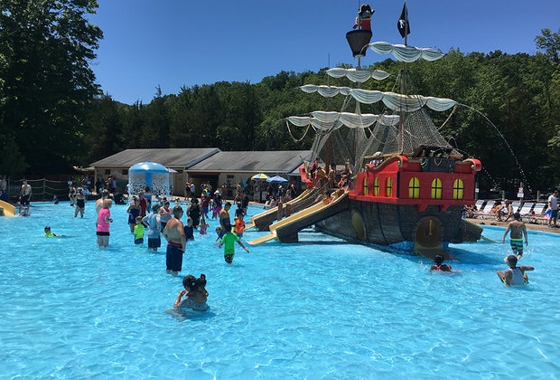 Swapping shorts for a swimsuit, my daughter jumped right into the giant wading pool. Nestled in the middle is the half-submerged Buccaneer Pirate Ship, a giant climbing structure with slides and tunnels to explore. There are also several mini slides around the edge of the pool, so impatient little ones will never have to wait their turn for a slip ‘n slide.