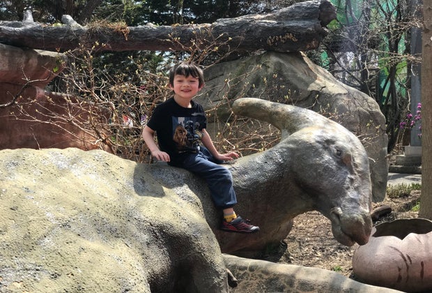 A few of the themed spaces were a big hit with my 5-year-old, including the dinosaur garden, which has a huge sandbox, and the KaBoom playground. As you can see below, my younger child enjoyed the outing, too!