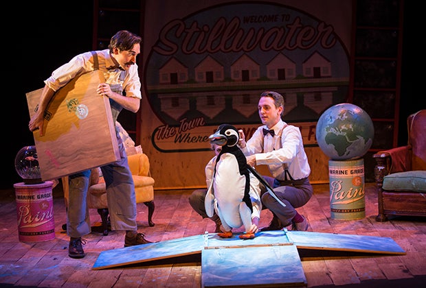 Watch as penguins take over the living room (and stage) in this retelling of the children's classic, Mr. Popper's Penguins. Photo by Helen Murray/courtesy New Victory Theater.