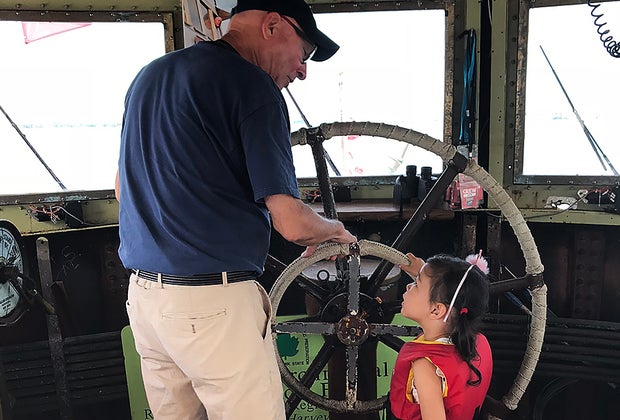 Kids will get a thrill as they take the wheel and help steer the boat.