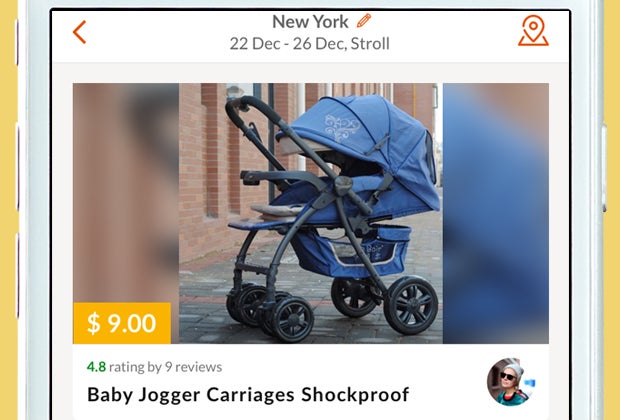 Kaminski says her team is working on updates they hope to have live around Thanksgiving 2016, including an in-app chat so transaction participants can work out details in real time; an app section recommending city-specific, kid-friendly activities; and an option to have equipment delivered via a courier service. For the moment, renters can pick up the items themselves or, if the option is available, pay an extra fee to have the owner drop it off at your location.