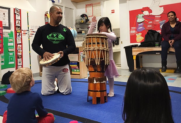 Capoeira drum lessons are part of the dual-cultural and language instruction offered at La Escuelita. Photo courtesy of the school.