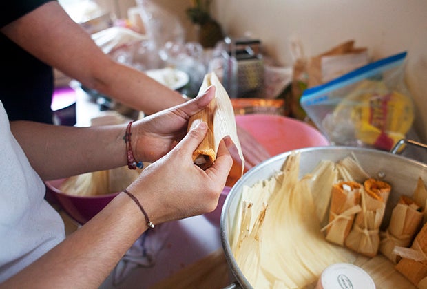 Making tamales.