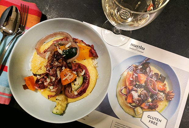Surprisingly, Martha Stewart’s Martha and Marley Spoon was the most disappointing. Martha’s sweet and sour chicken wasn’t very sweet or sour, and the cheesy honey polenta with roasted squash, onion and zucchini was overpowered by the addition of limp bitter endive. My kids liked the tamale pie, but didn’t think it was great. Where did you go wrong, Martha?