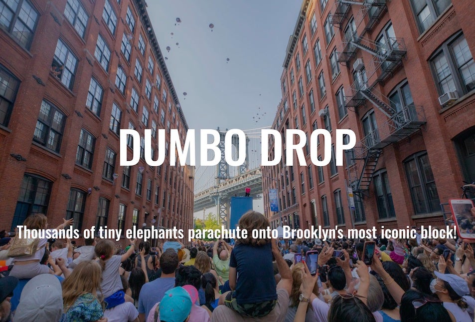 One of Brooklyn’s most iconic experiences, the annual Dumbo Drop—a flying elephant fundraising spectacle—sends thousands of parachuting toy elephants from the rooftops surrounding Washington Street.