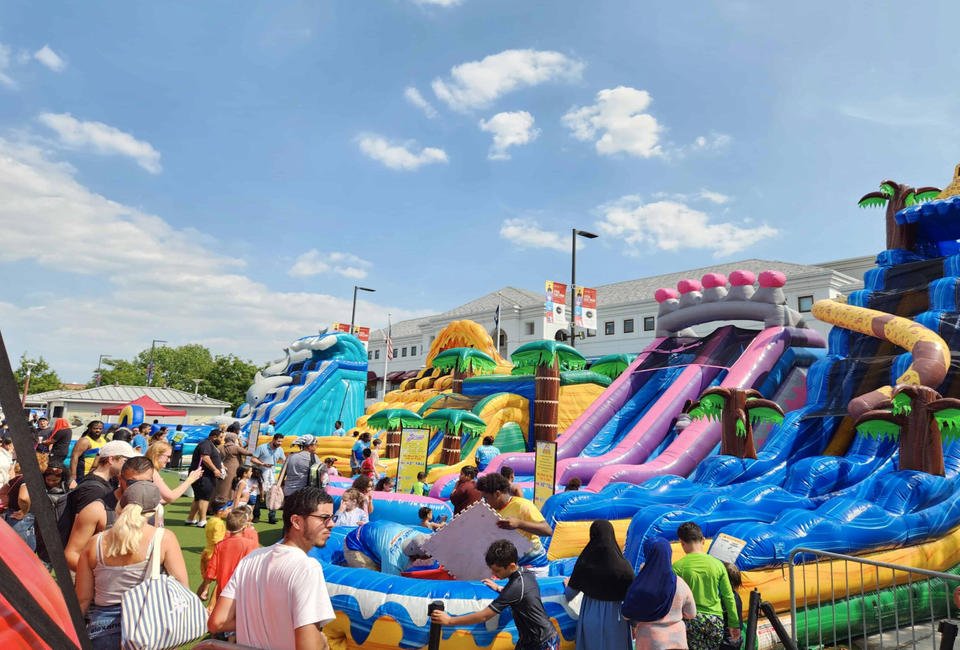 The outdoor attraction features over 30 inflatable slides and inflatable attractions within five key sections: