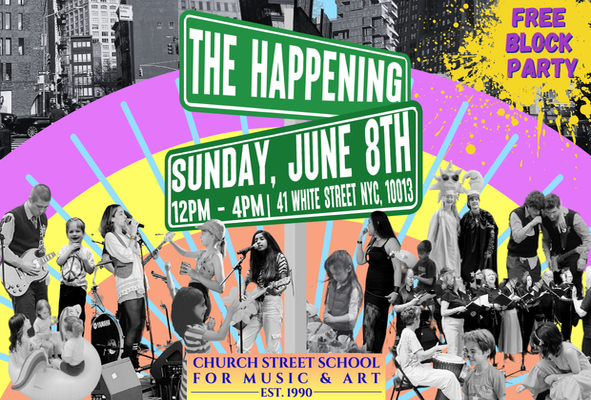 Church Street School for Music & Art's annual, all-ages community block party, The Happening, features live musical performances, art projects, a student art show, games, raffles, and more.
