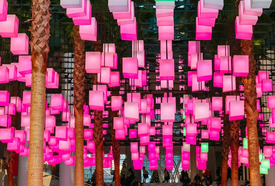 Visitors are immersed in a canopy of light emanating from hundreds of suspended lanterns floating above the Winter Garden at Brookfield Place. Touch-free Wishing Stations on the ground allow visitors to “send” a wish to the canopy of lanterns above, translating the wish into a mesmerizing display of lights and colors.