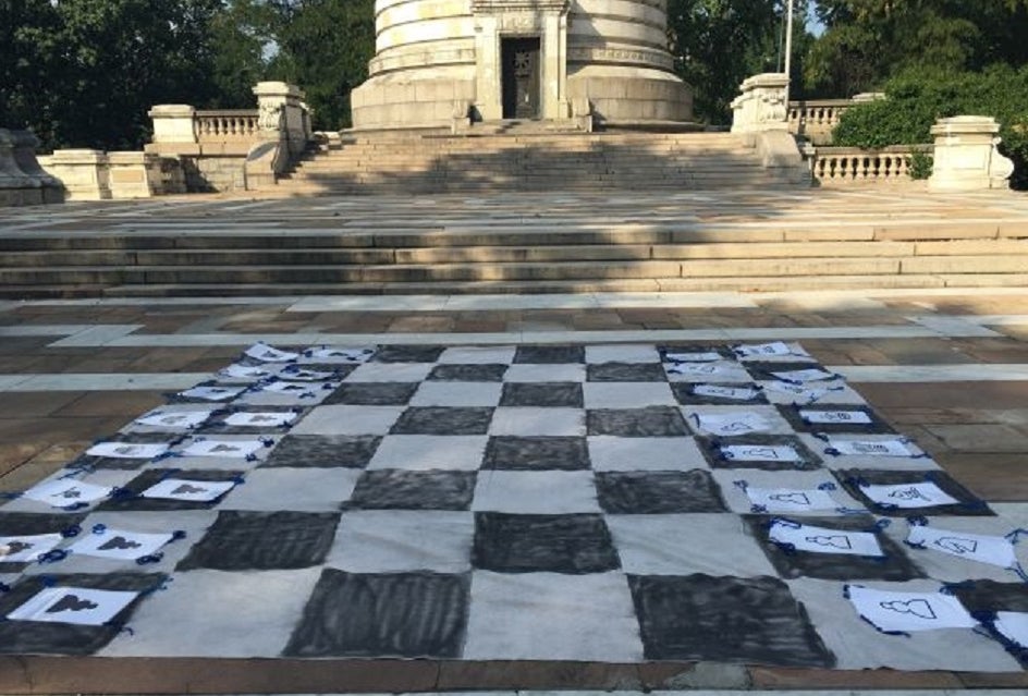 Play human chess on a giant chess board, where players stand on the position of their chosen chess piece (King, Queen, Bishop, etc.), and play the game with a group as a team.