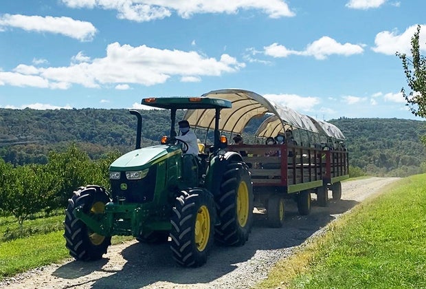 Hop on a tractor and enjoy a hayride at FIshkill Farms.