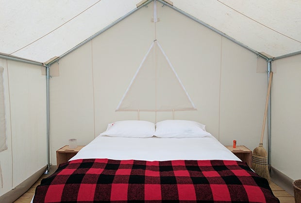 Amenities like luxe bedding made camping out a bit more comfortable.