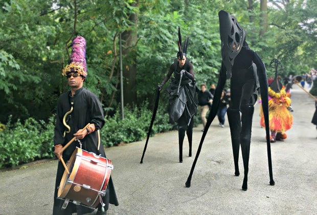 Next, we made our way toward the Dancing Crane Pavilion to check out pumpkin carving demonstrations. It really is amazing how detailed the carvings are. There are also ongoing Halloween themed crafts and activities at the pavilion. We watched the Halloween parade—a Boo at the Zoo staple. The costumed stilt walkers are always a treat, this year hailing from the Alice Farley Dance Theater.